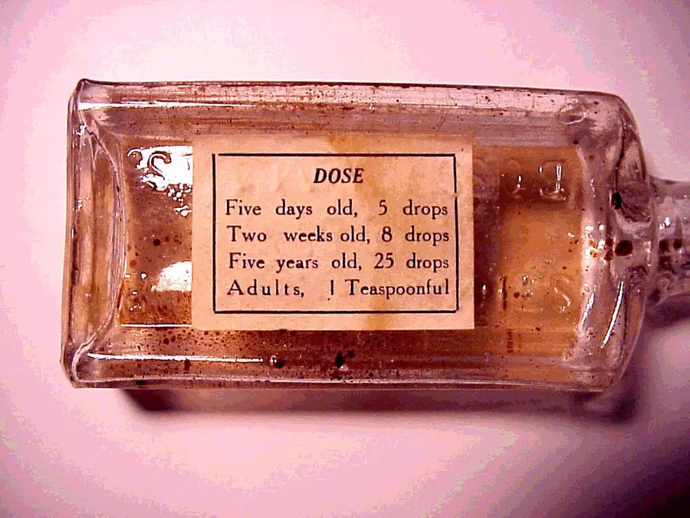 El denominado elixir PAREGÓRICO era otra mezcla de opio y alcohol. El alcohol alcanforado de 46º empleado por la Stickney & Poor Spice Co., sita en Boston (Massachussetts, EE. UU.), da una idea por sí solo del poder de esta bebida opiada. Cada onza de elixir PAREGÓRICO contenía 117 mg de opio, equivalentes a casi 12 mg de morfina. Las dosis para bebés (5-8 gotas), niños (25 gotas) y adultos (una cucharadita) venían especificadas en la etiqueta del reverso de la botella (1906).