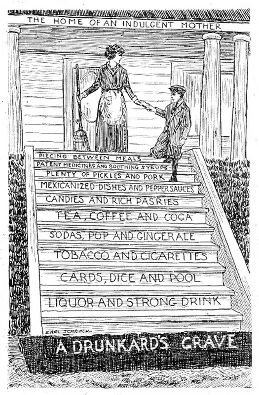 Esta hipótesis gozó de cierta credibilidad mientras la supuesta “escalada” podía rematarse con el dramático final que representa una muerte por sobredosis de heroína. Pero curiosamente esta teoría se formuló mucho antes de que el empleo de heroína fuera identificable por la mayoría de los ciudadanos como una realidad cotidiana, incluso mucho antes de que los anhelos prohibicionistas impregnaran la política gubernativa en materia de salud pública. De hecho, es anterior a que los derivados cannábicos (marihuana, hachís, kif, grifa…) pasaran a engrosar la nómina de sustancias prohibidas. Gracias a Alejo Alberdi, amigo incondicional e incansable ciberinvestigador, disponemos de la que seguramente fue la primera versión de dicha hipótesis, en este caso ejemplificada a través de “The home of an indulgent mother… starting her son toward a drunkard’s grave”, o sea, “El hogar de una madre permisiva… encaminando a su hijo hacia la tumba del borracho”, y difundida por el evangelista Thomas F. Hubbard en The temperance program (1915).