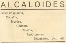 Morfina y cocaína en los cabarets (Las Provincias, 05.07.1921)Licor MontecristoAlcaloidesPolvo de coca BoehringerLos sueños de un morfinómano, de MásGaby la morfinómana, de Guilmain