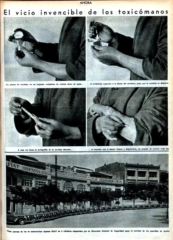 Por lo demás, durante los años 30 se produjo la incorporación definitiva de la fotografía al ejercicio de la práctica periodística. La prensa gráfica pudo combinar, de este modo, el reportaje sensacionalista con el soporte fotográfico necesario para consolidar con imágenes veraces los distintos estereotipos creados en torno al consumo y tráfico de drogas. Un tema que fue explotado hasta la extenuación, llegando a copar más de una portada de revista. Por lo demás, en 1937 Pedro Puche dirigió Barrios bajos, posiblemente la primera película en incorporar referencias abiertas al consumo y tráfico de drogas —concretamente de cocaína— de la cinematografía española.
