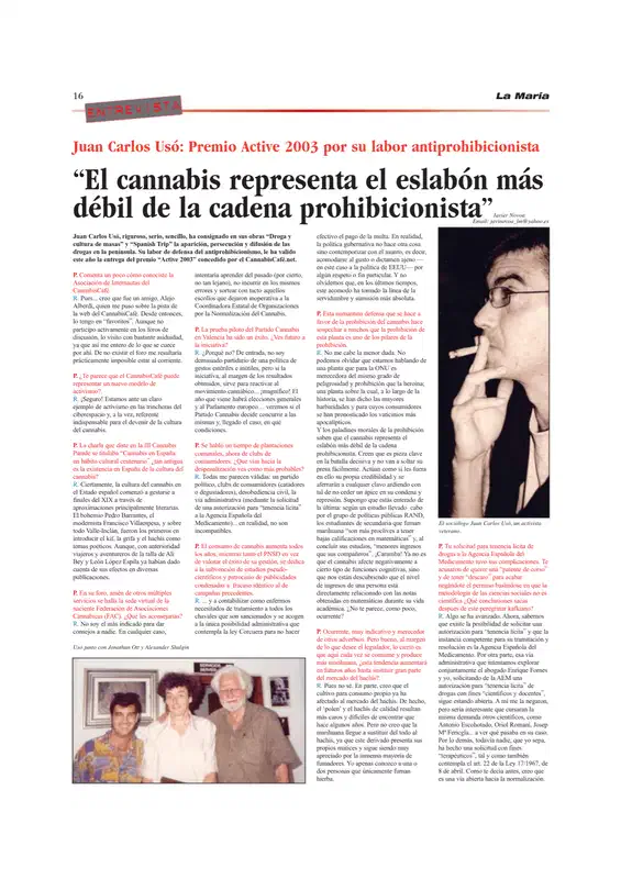 Juan Carlos Usó: Premio Active 2003 por su labor antiprohibicionista.